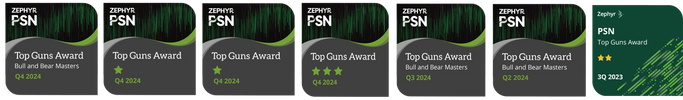 Bull & Bear Masters: Products must have an r-squared of 0.80 or greater relative to the style benchmark for the recent three-year period. Moreover, products must have an Upside Market Capture ratio of 100 or more for the latest three-year period, and Downside Market Capture ratio of 100 or less for the latest three-year period. The top ten Ratios between Upside Market Capture Ratio and Downside Capture Ratio become the PSN Bull & Bear Masters.